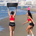 Imogen wore a tiny red crop top for the workout session, teamed with a pair of barely-there skimpy black hotpants. The pretty brunette tied her hair back with cute plaits as she worked off some calories on the sands. Joined by an equally attractive friend, wearing an equally skimpy outfit, Imogen took part in exercises such as lifting a huge tyre high above her head, skipping and running along the sand with some kind of parachute attached to her back.
